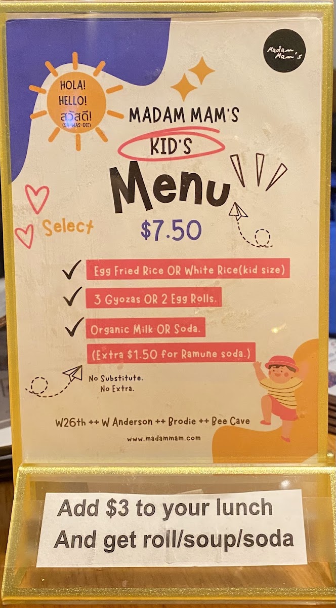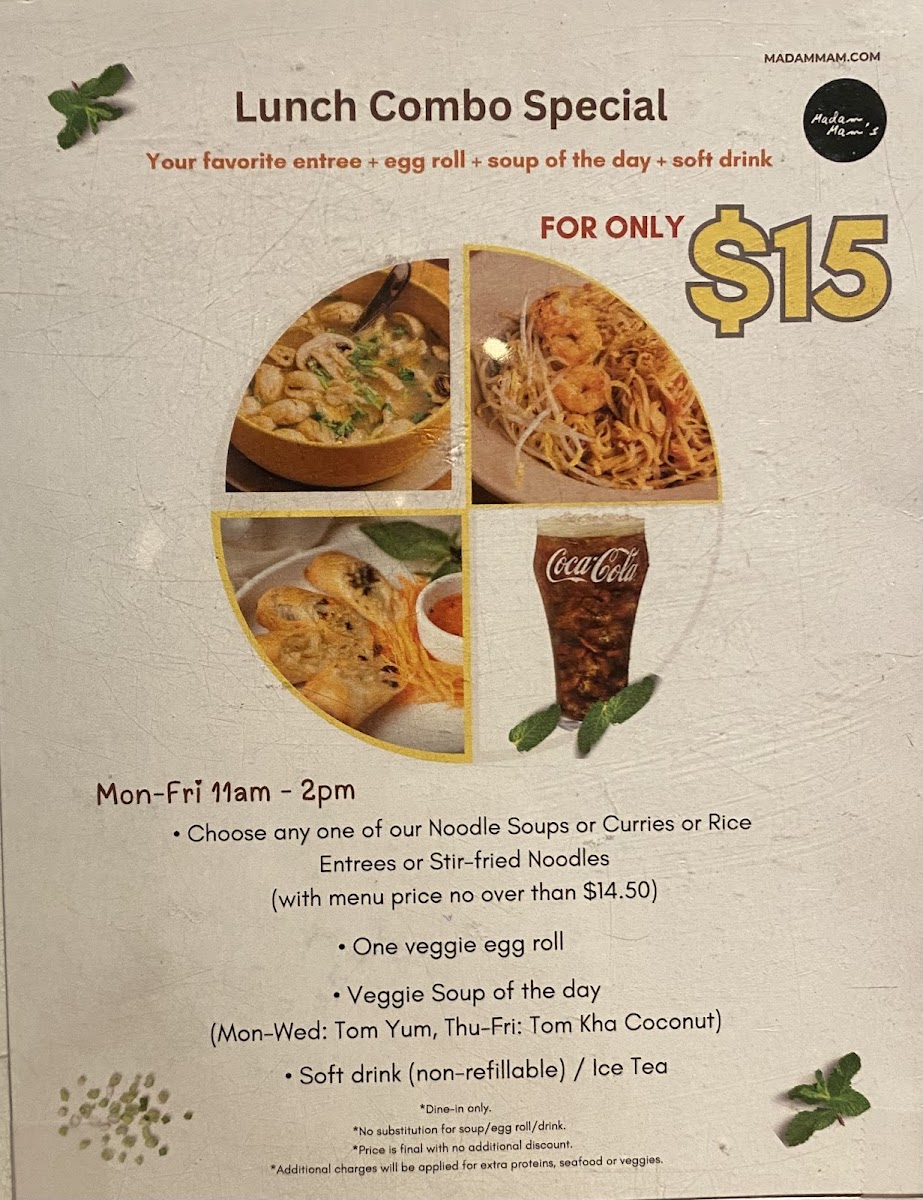 Madam Mam's Thai Cuisine, West at Bee Cave the Galleria Menu